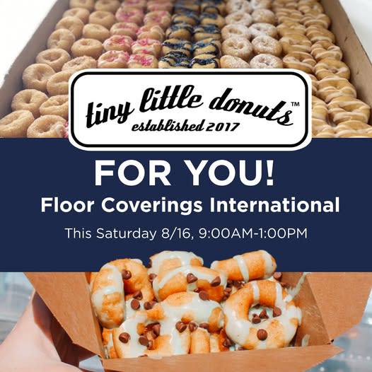 Join us as we celebrate the launch of our locally rooted flooring business with a day full of treats and connection. We’re thrilled to welcome Travelin' Tom's Coffee Truck,Cookie Cottage, and Tiny Donuts, all offering complimentary goodies while you explore what makes our company so unique. Meet the team, enjoy delicious snacks, and see how we’re making flooring simple, personal, and stress free with our mobile show room as we bring stylish, high quality options right to your doorstep.