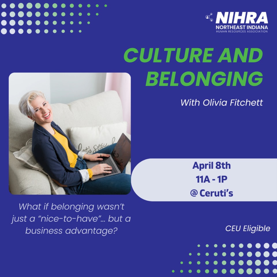 Join us at Ceruti's for a high-energy session where you'll discover why connection is a core human need at work - and how simple, practical strategies can dramatically improve engagement, retention, and authenticity on your team. Olivia will delve into the fundamental physiological need for connection and belonging within our workplaces. Participants will learn simple, effective strategies to enhance a sense of belonging, along with basic coaching practices designed to increase empathy for others. In this energetic session, we will explore how fostering belonging can directly impact employee retention, engagement and authenticity, providing practical tools to create a more inclusive and supportive work environment.